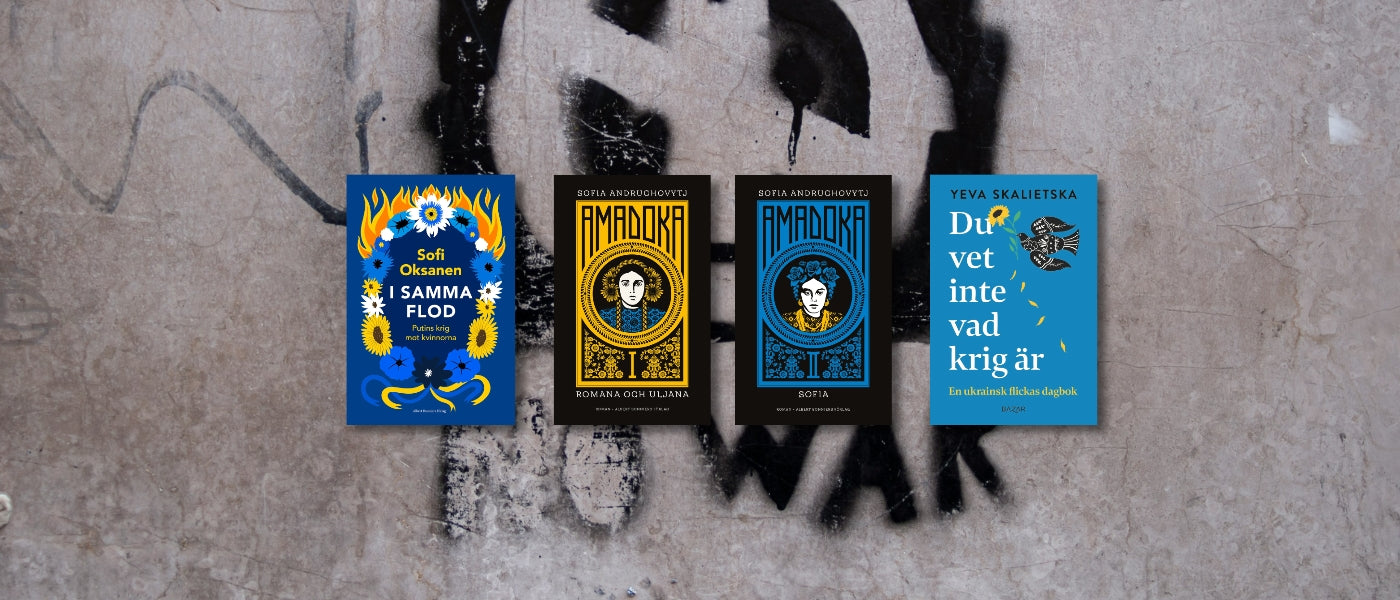 Den 24 februari är det 4 år sedan Rysslands storskaliga invasionskrig av Ukraina startade. Vi glömmer inte. Stötta med ett bokköp. I samma flod, Amadoka och Du vet inte vad krig är.